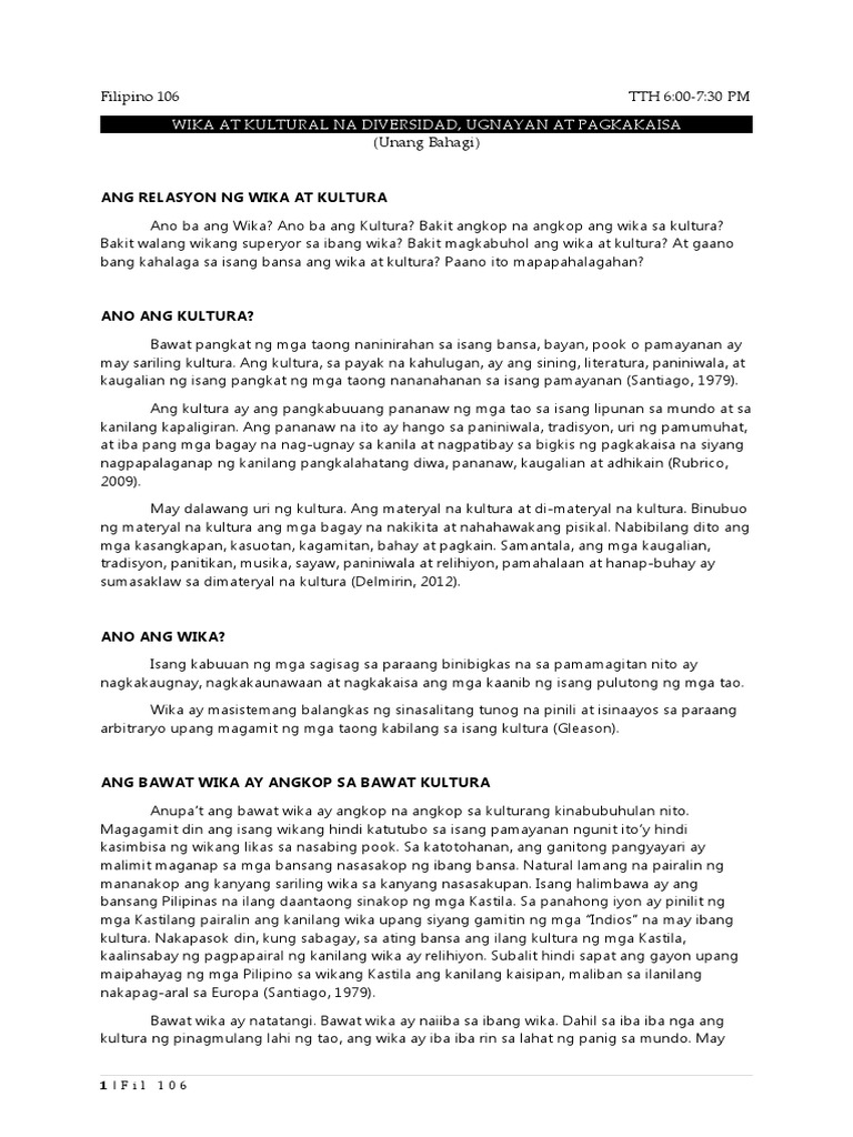 7 Wika At Kultural Na Diversidad Ugnayan At Pagkakaisa