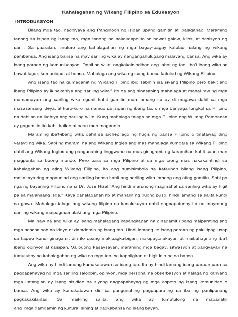Sadyang napakahalaga ng Wikang. 2019-03-29 Kahalagahan Ng Asignaturang Filipino Essay. Ang yaman na hinding-hindi nakukuha ng sinuman.