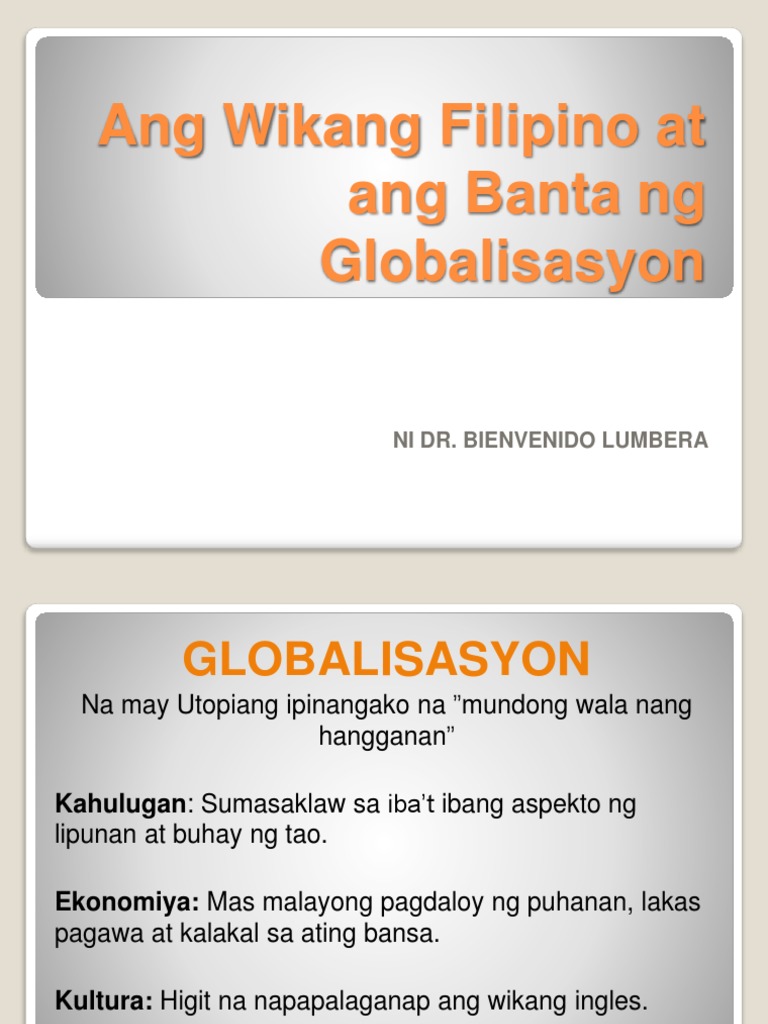 Ang Wikang Filipino At Ang Banta Ng Globalisasyon