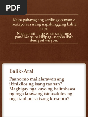 Some of the worksheets for this concept are Filipino Filipino baitang 1 ikaapat na markahan Edukasyon sa pagpapakatao To 12 gabay pangkurikulum 195 Filipino baitang 3 ikalawang markahan Mmootthheerr ttoonngguuee bbaasseedd mmuullttii. Quarter 1 Week 5MELC-BASED. 1722019 Pagpapahayag sa Sariling Opinyon o Reaksyon sa isang napakinggang Isyu Grade 4.