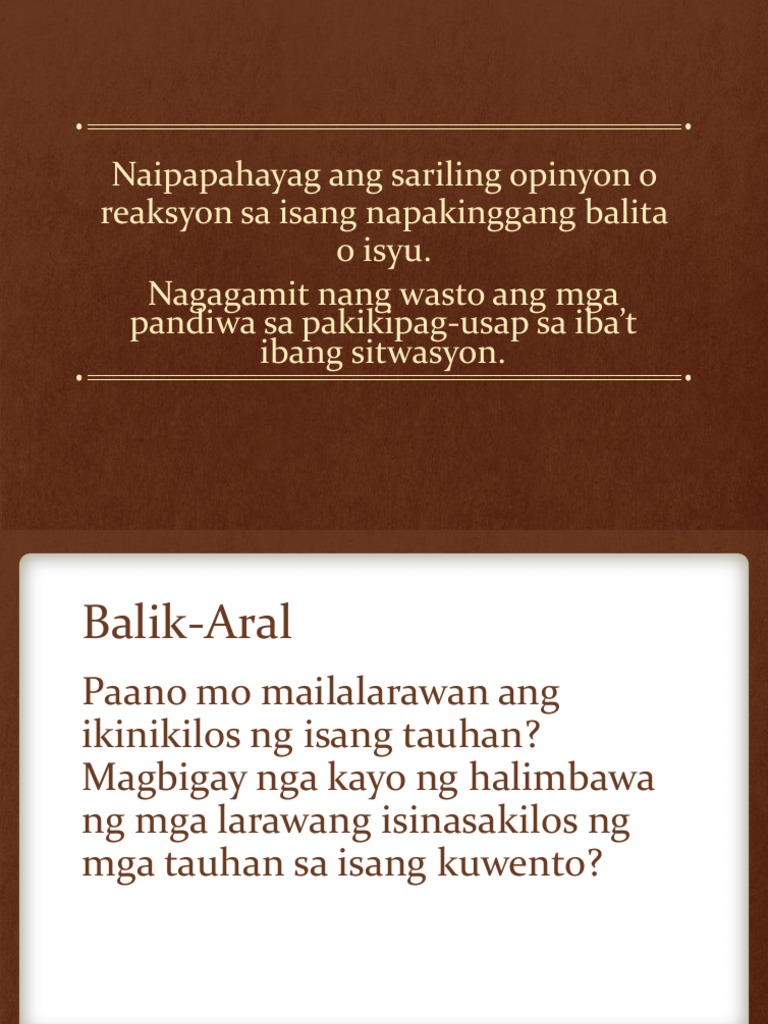 Naipapahayag Ang Sariling Opinyon O Reaksyon Sa Isang Napakinggang Balita O Isyu